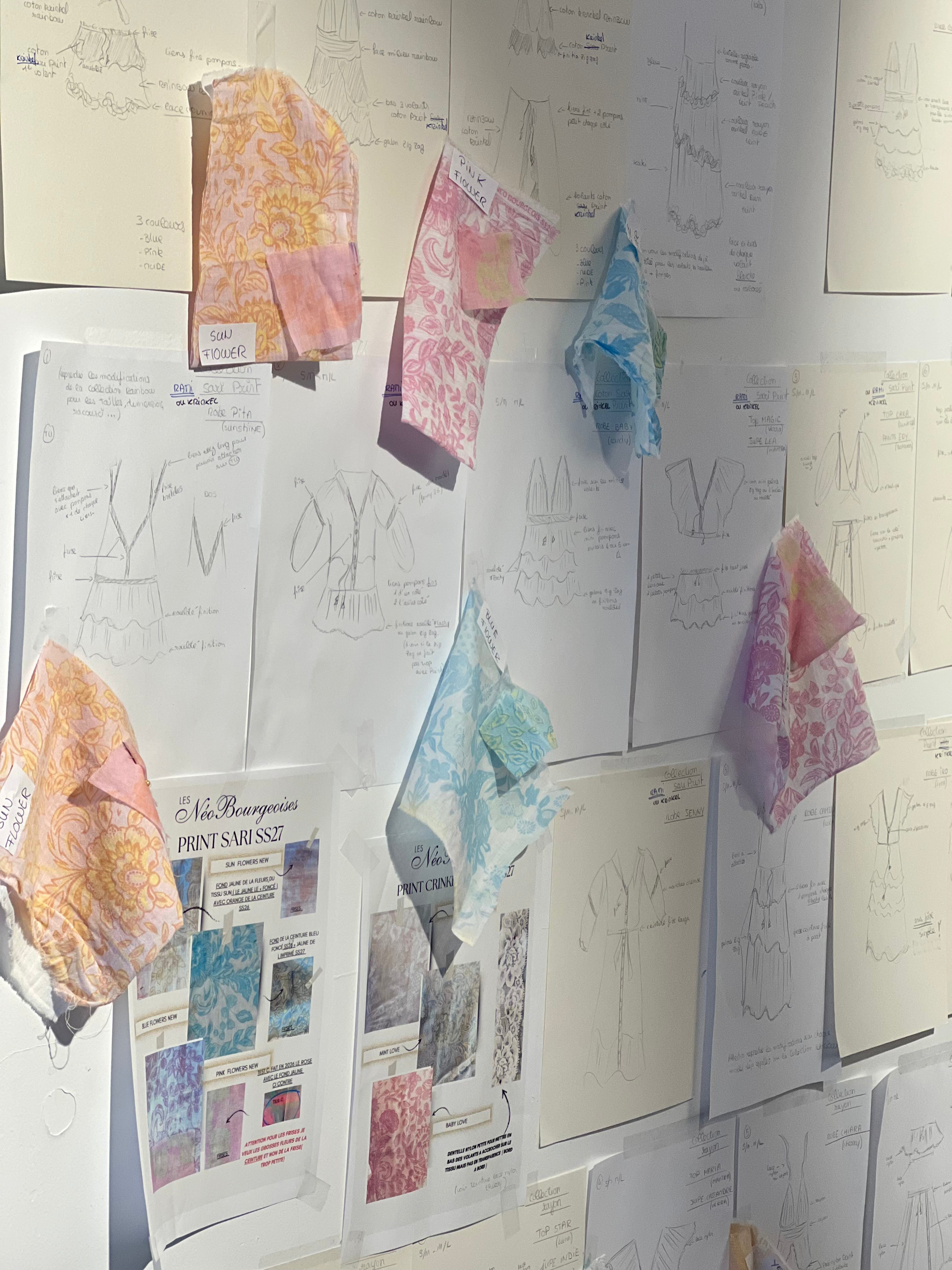 Les collections prennent vie autour de dessins et d’imprimés exclusifs, développés spécifiquement pour la marque. Chaque motif est imaginé en interne, puis décliné avec précision afin de trouver le juste équilibre entre couleur, rythme et élégance.