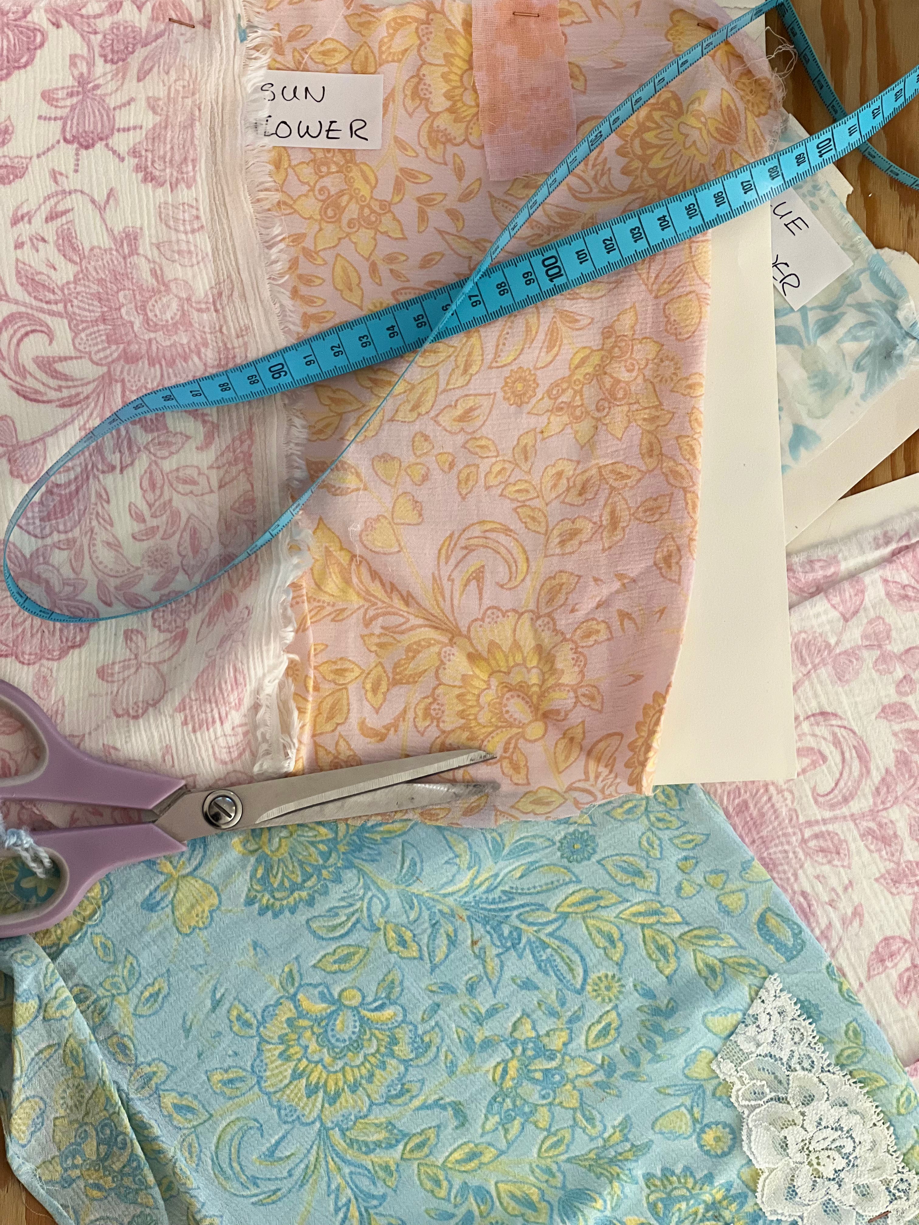 Nous travaillons principalement le coton, la soie, la viscose et le rami, des matières que nous aimons pour leur douceur, leur fluidité et leur aspect vaporeux. Elles permettent de créer des pièces respirantes, agréables à porter, pensées pour le soleil et les journées qui s’étirent.