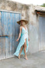 Féminin, aérien et empreint de poésie, le top Zimmerman est une ode à la douceur estivale. Avec sa teinte "Aqua" fraîche et lumineuse, il évoque les rivages méditerranéens et les longues journées ensoleillées. Sa coupe fluide et légère sublime naturellement la silhouette, tandis que ses galons en dentelle apportent une touche bohème irrésistible. Le décolleté en V profond et le lien ajustable sous la poitrine assurent un maintien subtil tout en mettant en valeur le buste. Chaque pièce est teinte artisanalement à la main dans le Sud de la France, rendant chaque top unique et délicatement nuancé.